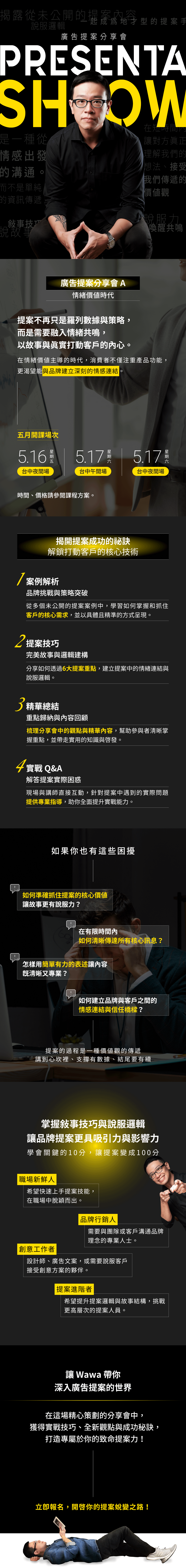 將奧美、李奧貝納等大型代理商經驗,融合數位創意、廣告、行銷以及策略,希望透過工作坊、講座、課程,讓更多人體會廣告魅力,用創意改變世界。